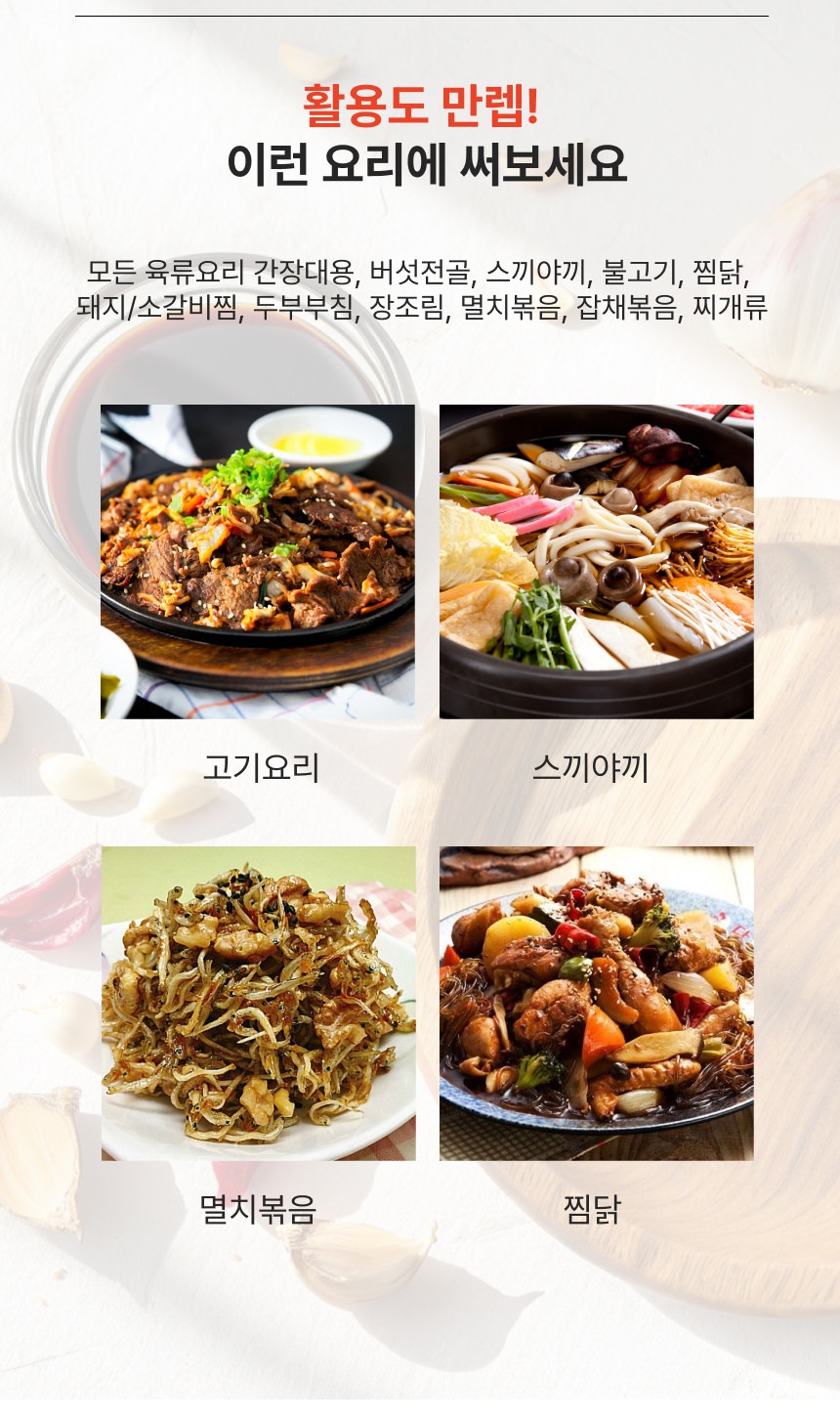 성수 마늘다시마맛간장 1.8L 12,000원 12,500원 4% 이벤트 MD추천 칸 황제 흑염소탕/고품격 보양식 깊고 신한 국물과 흑염소 고기 다양하고 건강한 채소의 조화 ( 600g x 5봉) 27,000원 이벤트 이벤트 성수 돈사골엑기스 1.8L 17,700원 이벤트 이벤트