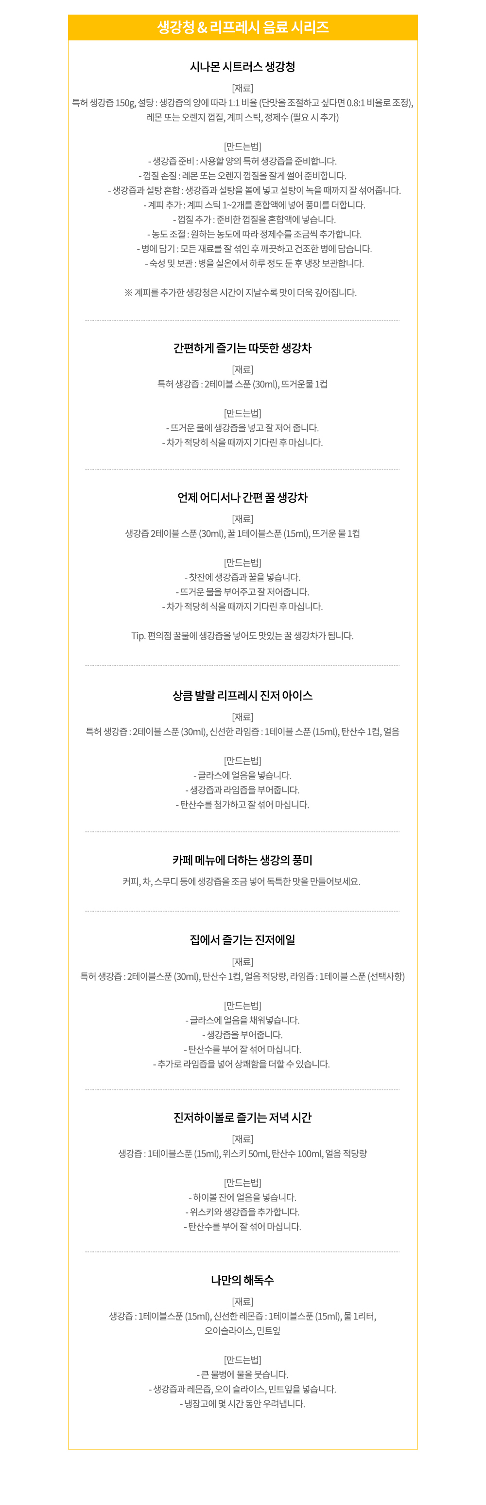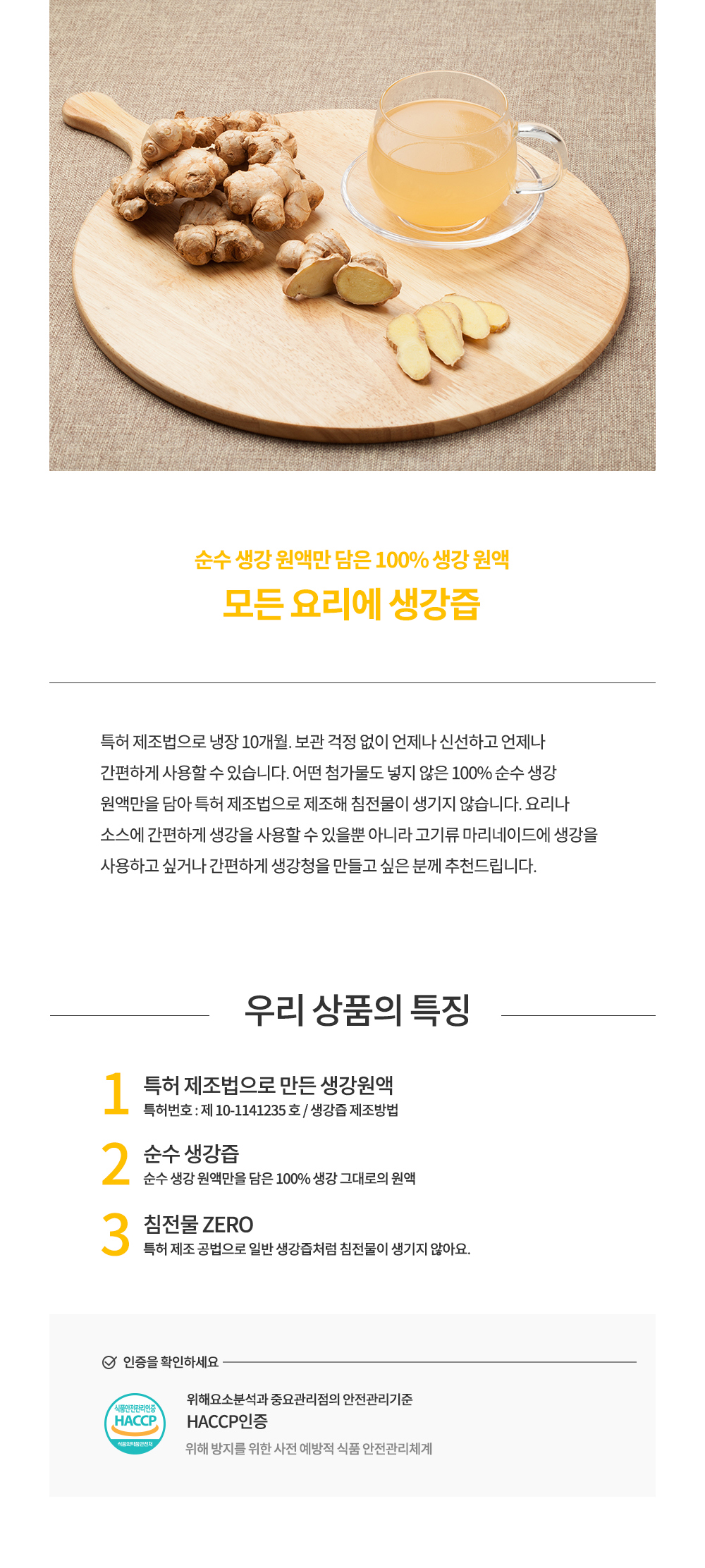 | 제품명 | 생강즙 특허제조법으로 침전물 없는 생강 원액 첨가물NO 100 국산 (요리용 생강청 음료등) 150g [원산지국산 등] | 상품코드 | SZDLK2NG0C5L80HG7LBL |